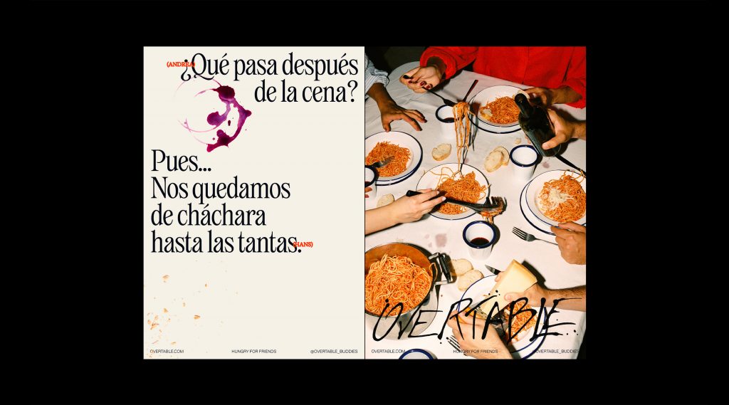 Precisamente, en esta tradición española se inspira el naming de Overtable, un nombre que tiene la misión de universalizar este momento, haciéndolo accesible para todos, sin importar su nacionalidad. Porque a veces, todo lo que necesitas para conectar con las personas es compartir una mesa juntos.